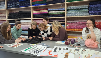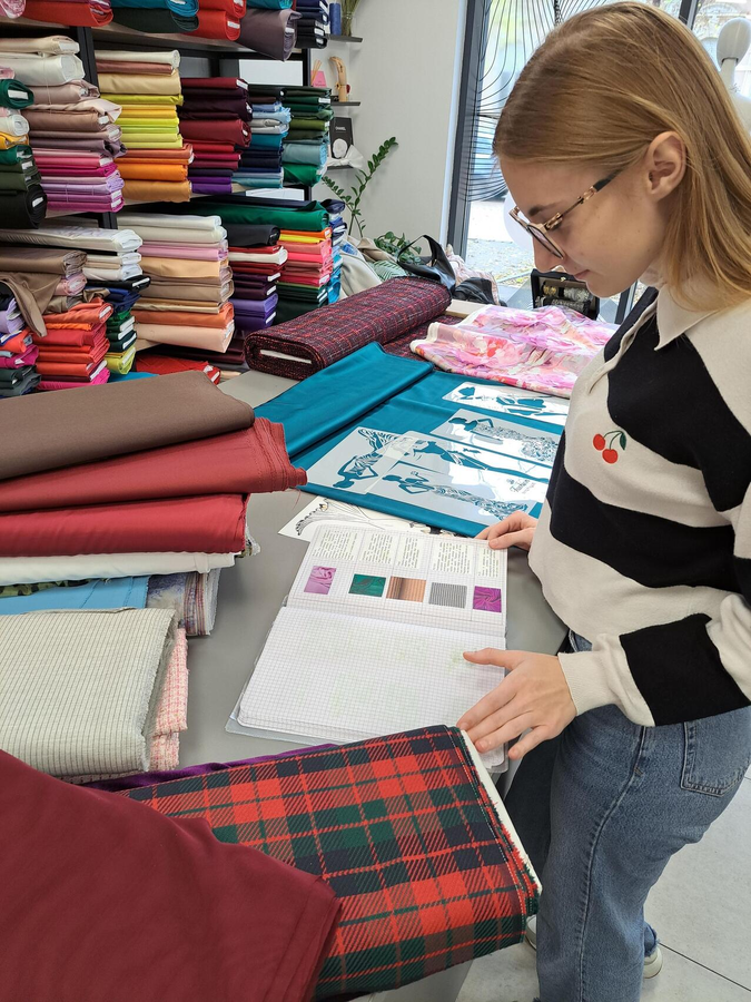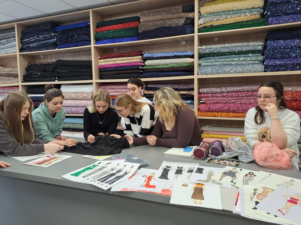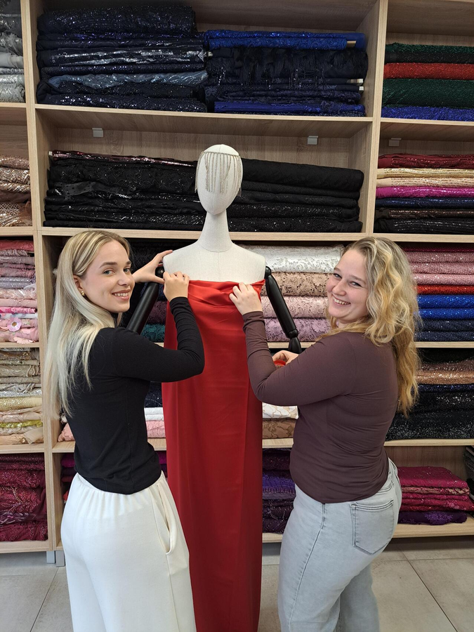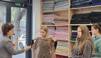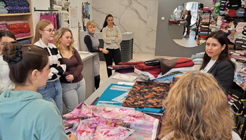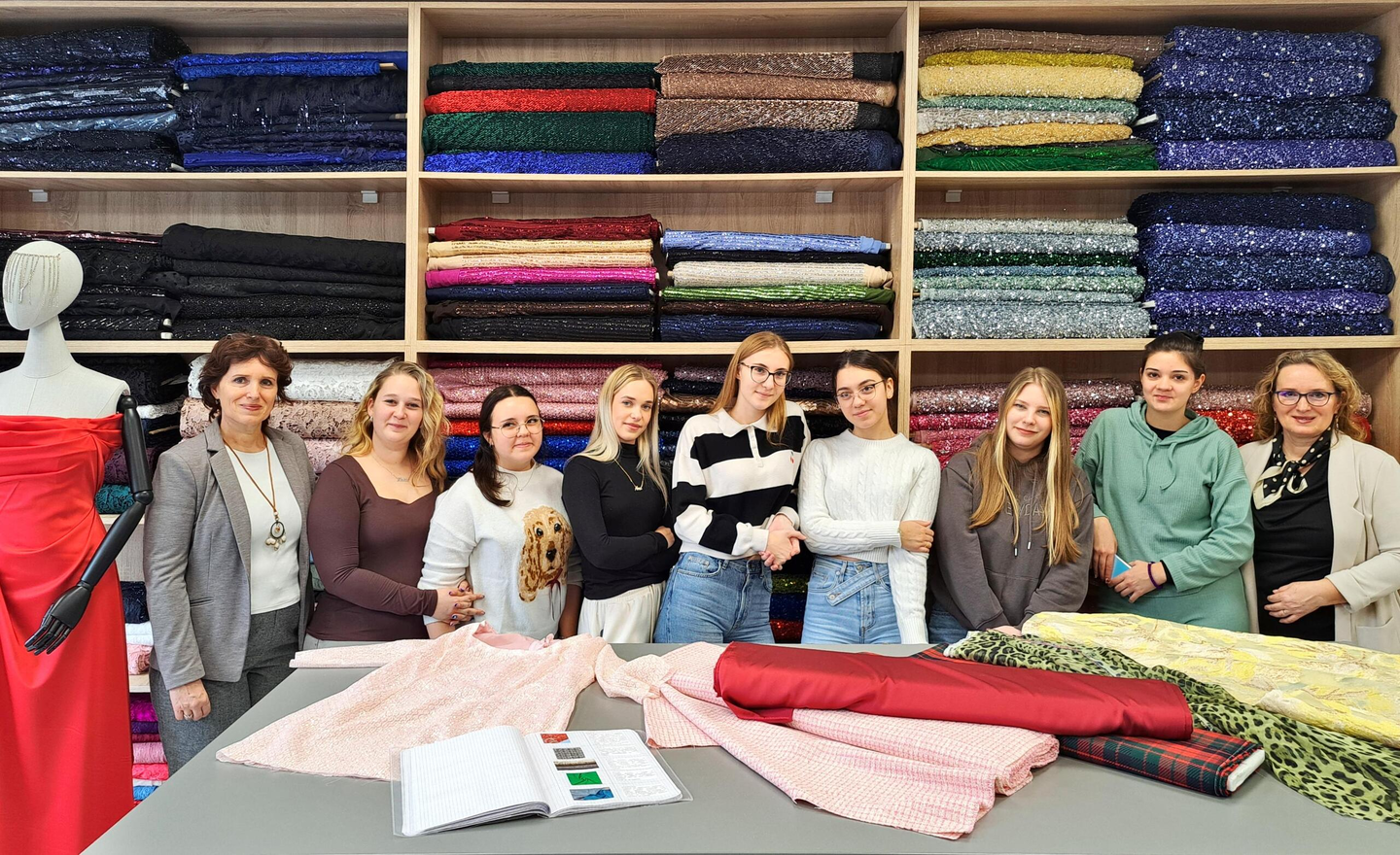Az IV–15 osztály tanulói (ruhamodellező technikus oktatási profil) Ana Žigmanov Vuković és Kata Suknović tanárnők kíséretében november 17-én, hétfőn ellátogattak a szabadkai La Fira Tekstil üzletbe, ahol exkluzív textilipari alapanyagok kaphatók. A látogatás során, a kellemes légkörnek és a La Fira csapata kedvességének köszönhetően a tanulók kapcsolatot tudtak teremteni szinte valamennyi szakmai tantárgy tananyaga között. Az inspirációt az alkalmi ruha adta – ennek mentén szinte „összeszőtték” a szakmai ismereteket a tervezéstől kezdve a textilanyagok kiválasztásán át egészen a bemutatott anyagok szabásáig és varrásáig. A tanulók gyakorlati módon bővíthették tudásukat, miközben megismerkedtek az újabb anyagtípusokkal és azok piaci elnevezéseivel is: a nyomott brokátoktól a kézzel felvarrt üveggyöngyökkel díszített kelméken át egészen azokig az anyagokig, amelyek szélességük mentén eltérő textúrájúak – flitteres felülettől a tollas díszítésig. „Magunkkal vittük a ruhatervezés órákon készült rajzokat, és közösen javasoltunk megfelelő anyagokat az egyes modellekhez” – magyarázta Kata Suknović tanárnő.