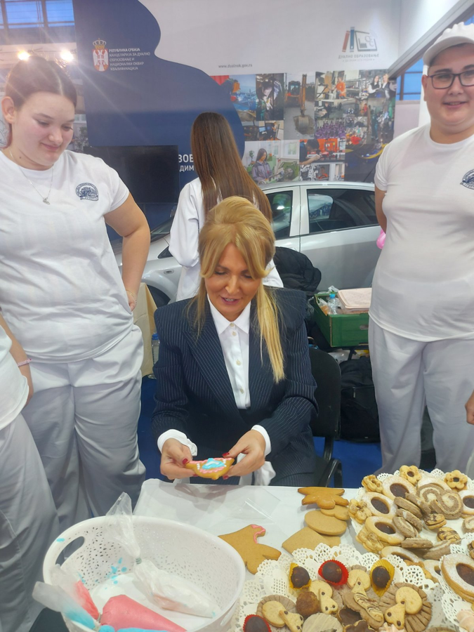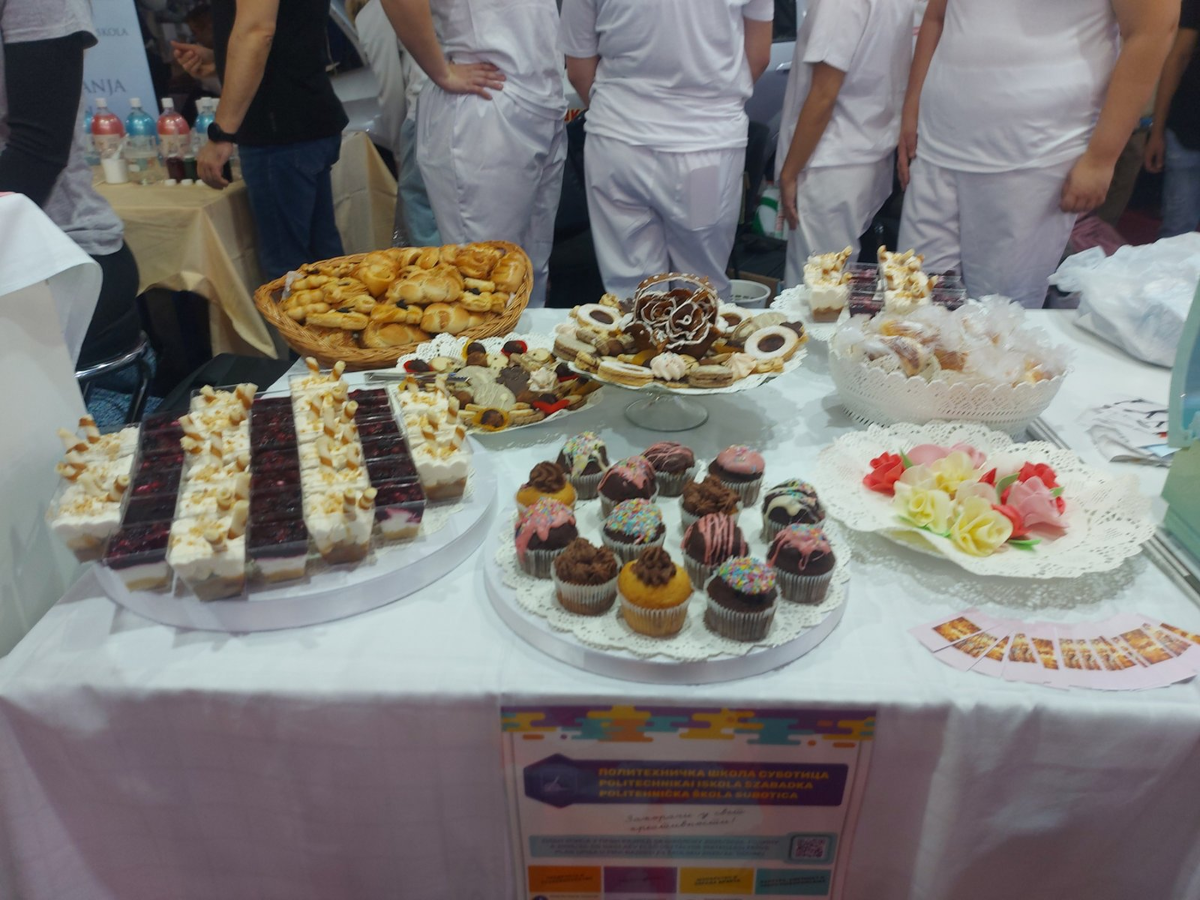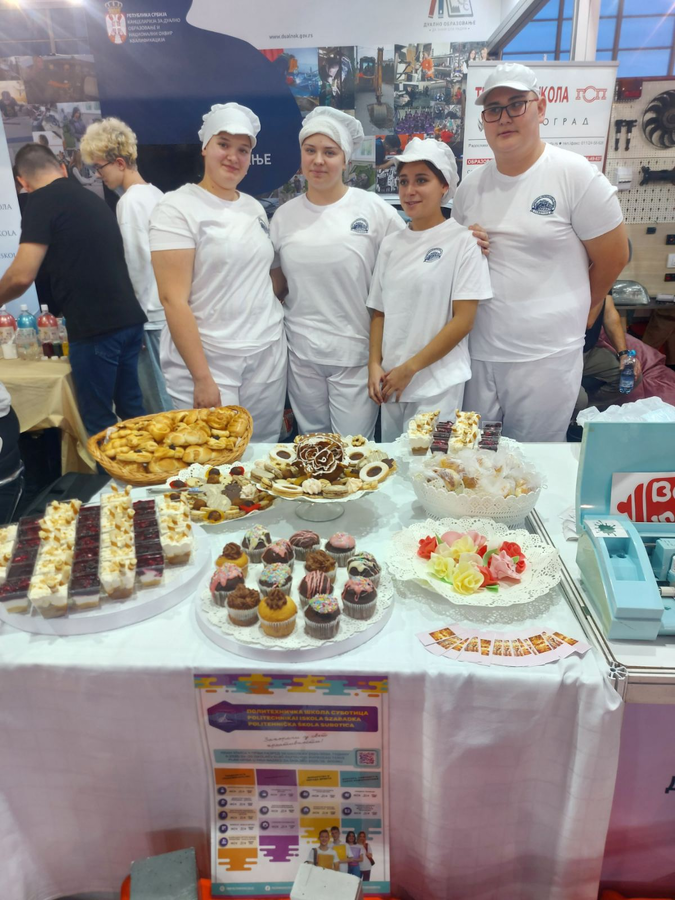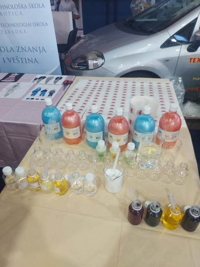A Duális Oktatási Iroda és a Nemzeti Képesítési Keretrendszer standján, 2025. október 29-én, az 54. Oktatási és Taneszköz Kiállításon a Vegyészeti-Technológiai Iskola tanulói különböző műhelyfoglalkozásokon keresztül mutatták be elméleti tudásukat: folyékony szappan készítése, süteménydíszítés, illetve ruhadarabok kombinációjának kiválasztása. Iskolánkat a következő tanulók képviselték: Dunja Kojić és Tarik Alibašić (4-13 osztály), Kristina Pap és Ana Ćakić (4-15 osztály), valamint Anabela Stantić, Adrijana Ivković I., Violeta Dević és Dejan Bazler (2-7 osztály). A diákokat Jelena Muminović M., Mirjana Dulić és Damir Kopunović tanárok kísérték.