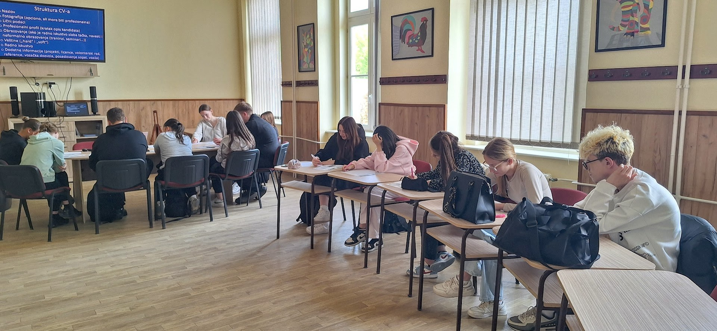 U vreme kada prvi utisak često odlučuje o tome da li će kandidat biti pozvan na razgovor za posao, učenici su kroz interaktivan rad saznali da poslodavac često pregleda CV u svega 10 do 30 sekundi, zbog čega je važno da biografija bude pregledna, jasna i vizuelno privlačna. Posebna pažnja posvećena je razumevanju razlike između dobro i loše napisanog CV-a. Učenici su analizirali najčešće greške, poput predugačkih i nejasno strukturiranih biografija, pravopisnih grešaka, opštih formulacija i navođenja netačnih informacija. Kroz konkretne primere upoznali su se sa osnovnom strukturom profesionalne biografije: od ličnih podataka i profesionalnog profila, preko obrazovanja i veština, do radnog iskustva i dodatnih sekcija. Posebno je istaknuto da i učenici bez radnog iskustva mogu da naprave kvalitetan CV, navodeći školsku praksu, timske projekte, volontiranje, stipendije, nagrade i reference. To je tzv. „CV fokusiran na veštine“, pogodan za kandidate kojima je radno iskustvo nedostatak.