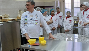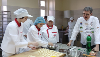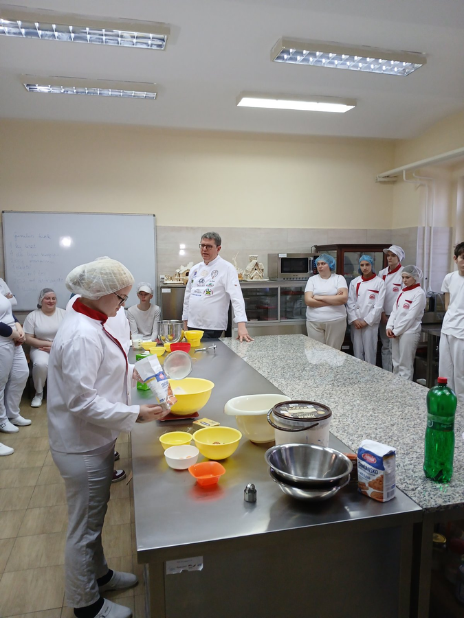 Učenici Hemijsko-tehnološke škole, budući poslastičari, imali su jedinstvenu priliku da učestvuju u profesionalnoj orijentaciji za svoj obrazovni profil, koju je u četvrtak, 12. februara, održao naš sugrađanin dr Paško Čaba, poznati kuvar, poslastičar, dirigent i sveštenik, dobitnik brojnih svetskih priznanja iz oblasti kulinarstva. Više nego zanimljivo predavanje, koje je obuhvatilo “i teoriju i praksu” (predavanje i radionica), bilo je organizovano za učenike od prvog do trećeg razreda, koji se obrazuju za poslastičare. Dr Čaba Paško želeo je svojoj pričom (o privatnom i profesionalnom životu) da inspiriše mlade, ujedno ih podučavajući konkretnim veštinama – uz njegovu pomoć, po receptu koji potpisuje, učenici su pravili krofne (idealan izbor za vreme poklada).