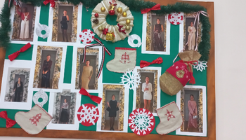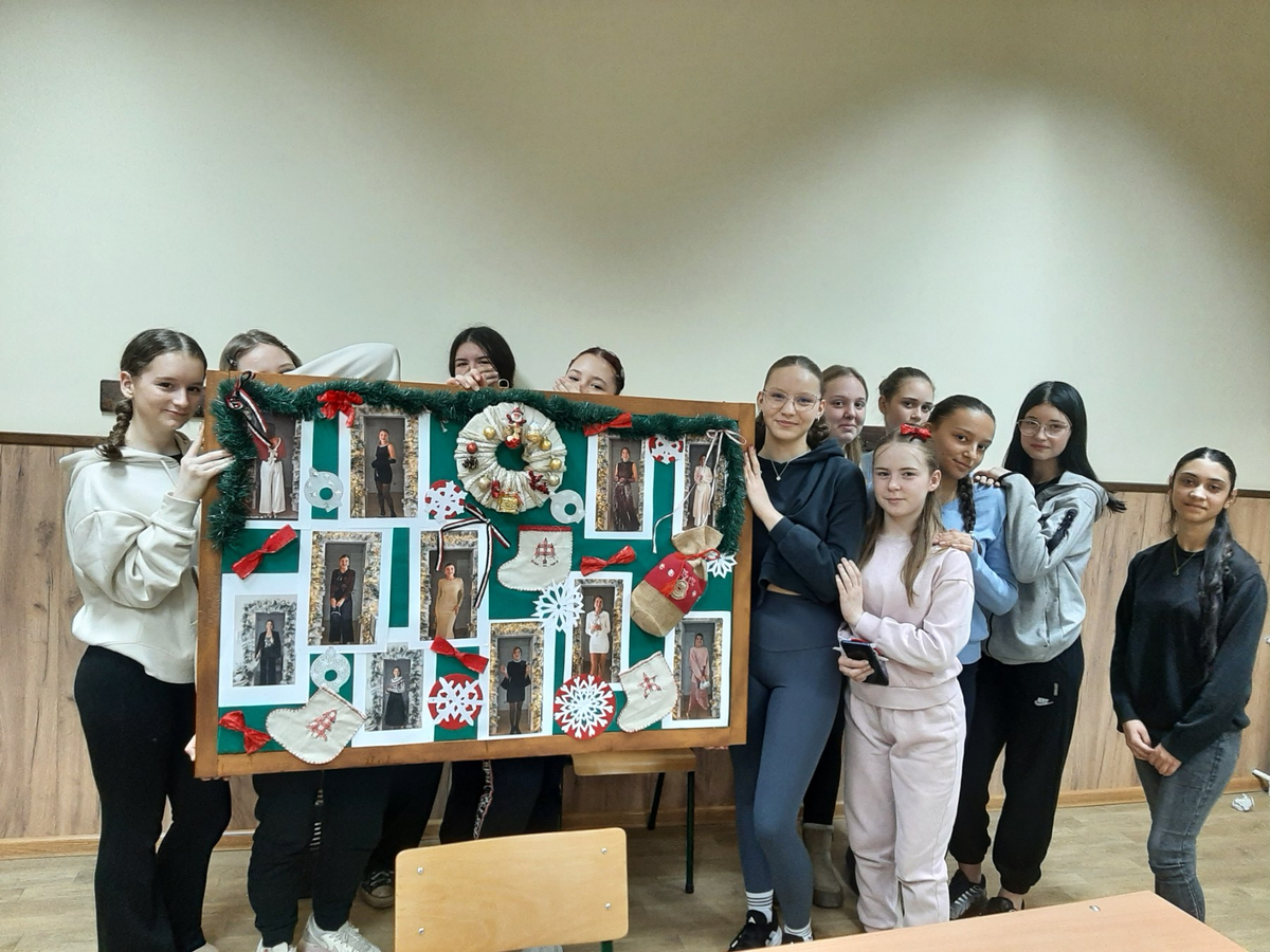 U susret nastupajućim praznicima, Hemijsko-tehnološka škola osvanula je u prazničnom ruhu, a tome je, osim ukrašene jelke u zbornici, na stepeništu škole, i u pojedinim učionicama, doprineo i „novogodišnji“ pano i svečana crvena haljina, ukrašena lampicama, koju ne mogu a da ne primete (posebno) devojke koje prolaze stepeništem... „Za ukrašavanje panoa koji se nalazi pored biblioteke, zaslužne su učenice odeljenja I-15 (čas na temu - tekstilni materijali) “ – objašnjava prof. Jelena Muminović. Pano pored zbornice ukrasile su učenice odeljenja IV-15 (prof.Kara Suknović). Crvenu haljinu bajkovitog izgleda koja se nalazi pored jelke, izradile su profesorke Ivet Kuzmanov i Sabina Pećerić, sa odeljenjem III-10.