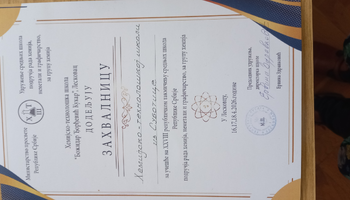 Pohvale svakako zaslužuju i učenici Dunja Kojić (odeljenje 4-13) i Dušan Vučković (odeljenje 3-9), kao i njihovi mentori Damir Kopunović i Svetozar Toković, za učešće na republičkom takmičenju iz hemijske tehnologije.